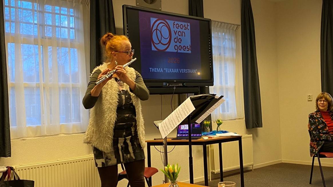 Tijdens de inspiratiebijeenkomst van 19 januari jl. kwamen kunstenaars en kerken samen in creativiteit en spiritualiteit. We luisterden naar dwarsfluitmuziek van Rosalie Vrijhof. Anneke Vermaas gaf uitleg over het thema en de organisatie van het komende Feest van de Geest. Ervaringen werden gedeeld naar aanleiding van een fotospel. Het thema ‘elkaar verstaan’ kreeg betekenis door open luisteren, wederzijds respect en nieuwsgierigheid. In gesprekken ontstond herkenning en verbinding. De bijeenkomst liet zien hoe kunst kan helpen om geloof, cultuur en samenleving dichter bij elkaar te brengen en zo nieuwe perspectieven voor gezamenlijke toekomst en dialoog opende. Na de broodmaaltijd sloot de bijeenkomst rond half zeven. De expositie van Feest van de Geest start op Hemelvaartsdag 14 mei. De overige expositiedagen zijn 16, 17, 23, 24 en 25 mei van 13.00-17.00 uur. Voor deze dagen zoeken we nog gastvrouwen en -heren. De officiële start van Feest van de Geest is woensdagavond 13 mei in het Hart van Hollandscheveld, verdere informatie volgt nog.